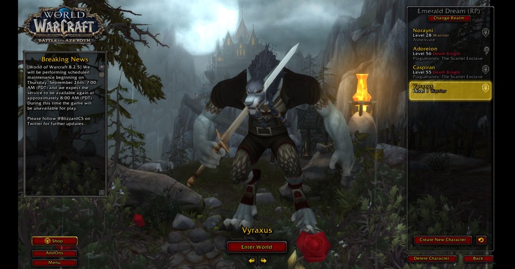 When I learned that World of Warcraft patch 8.2.5 with the updated worgen and goblin models was coming out September 24th, I was psyched! I’d been excited about the new worgen models since they first announced it and started showing images of them. I wasn’t as excited about goblins, but I later changed my mind. That’s a story for another day though.