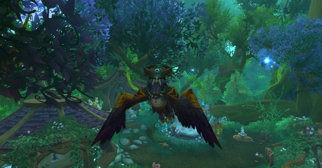 I’ve read some complaints online about the noises the flight form makes, but I like the sounds as it gives the form more character and personality. The ability to change into different animal forms is one of my favorite parts of being a druid and I think Blizzard did well with the creation of the druid class mount. Plus, it has the nice bonus of being ridable, which will come in handy for flying my daughter’s characters around when needed.