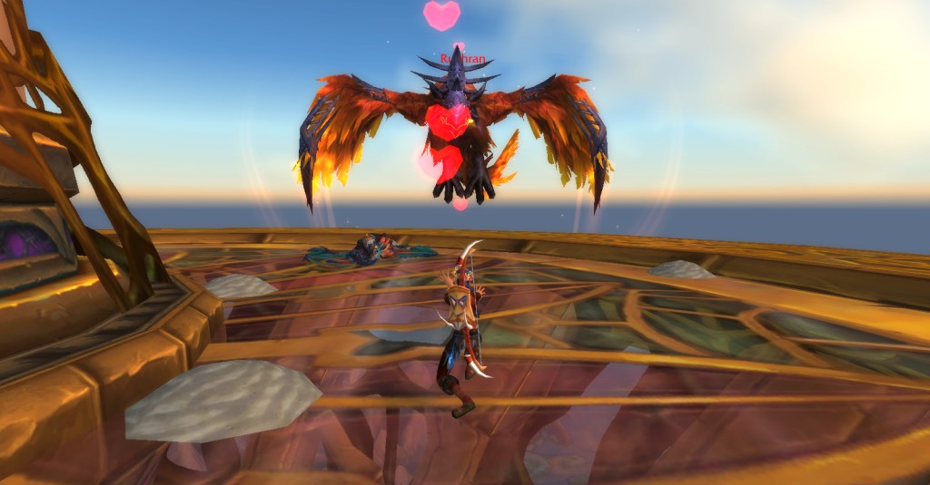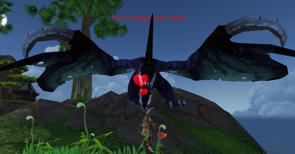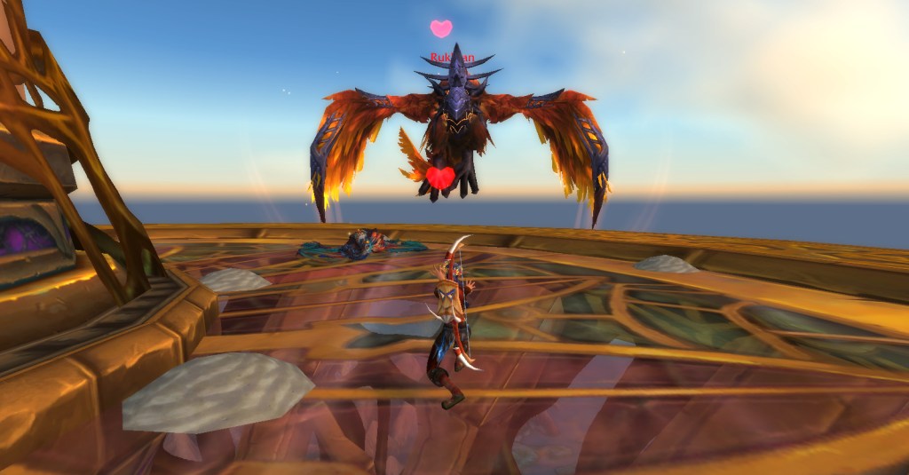 The new tamable pets that most intrigued me were the dread rocs and dread ravens. I’d wanted to tame the blue dread rocs in Highmountain since I first saw them and at last I finally could! I also really liked the appearance of the fiery red dread raven and once I read it was a boss in Skyreach dungeon (highly solo-able on my 120 belf hunter Sri) I knew I had to get him.