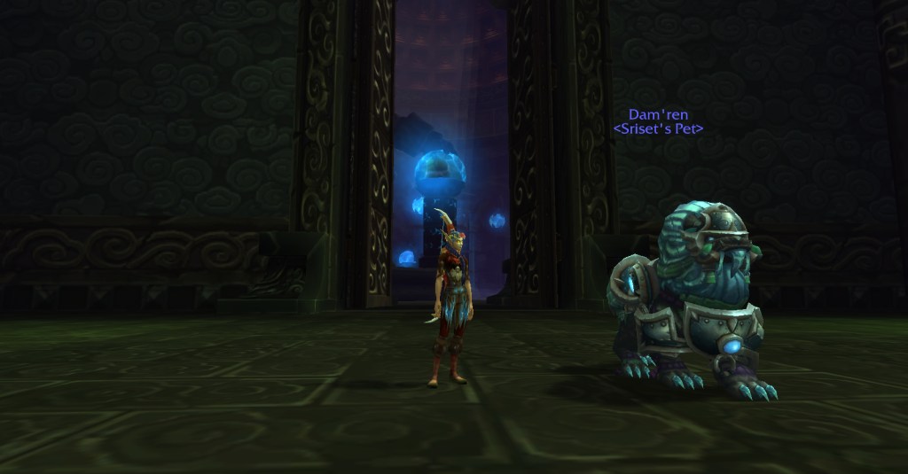 I then headed to Pandaria with the intention of taming a flying armored quilen in the Throne of Thunder raid. Due to the whole Visions of N’Zoth nightmare, I had to go back in time and then I couldn’t find the portal to the Isle of Thunder and had to go back and forth a few times until I got in sync. It didn’t increase my love for all the purple void and ooze at all.