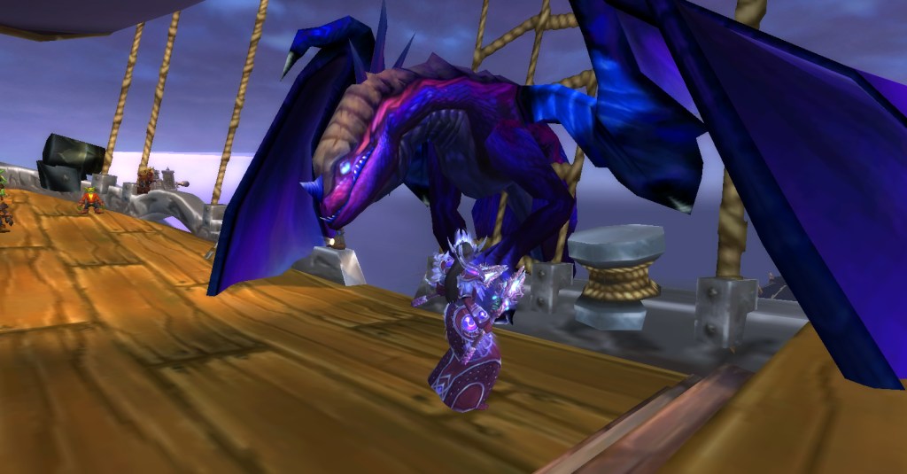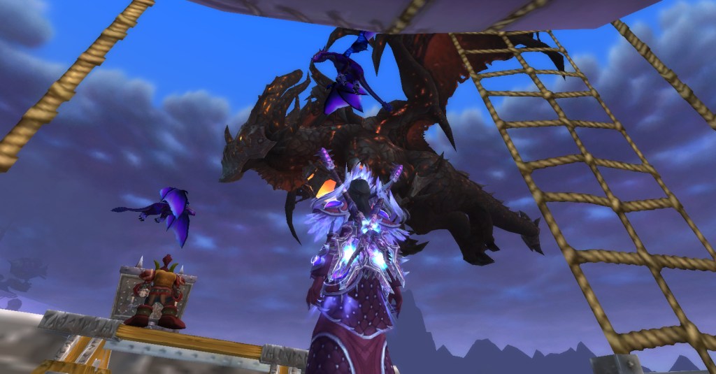 I got so distracted by how cool Tag looked in the armor, that I decided to resume leveling her and took her to Twilight Highlands. I’ve leveled at least one toon in Twilight Highlands before but it’s been a rather long time, so I didn’t remember the whole, long ride on the zeppelin there and many of the quests that followed it. It’s always nice to go back to an “old” area and discover that it’s all new to me.