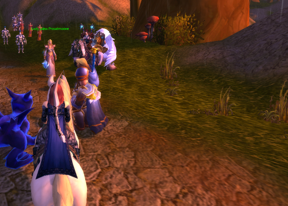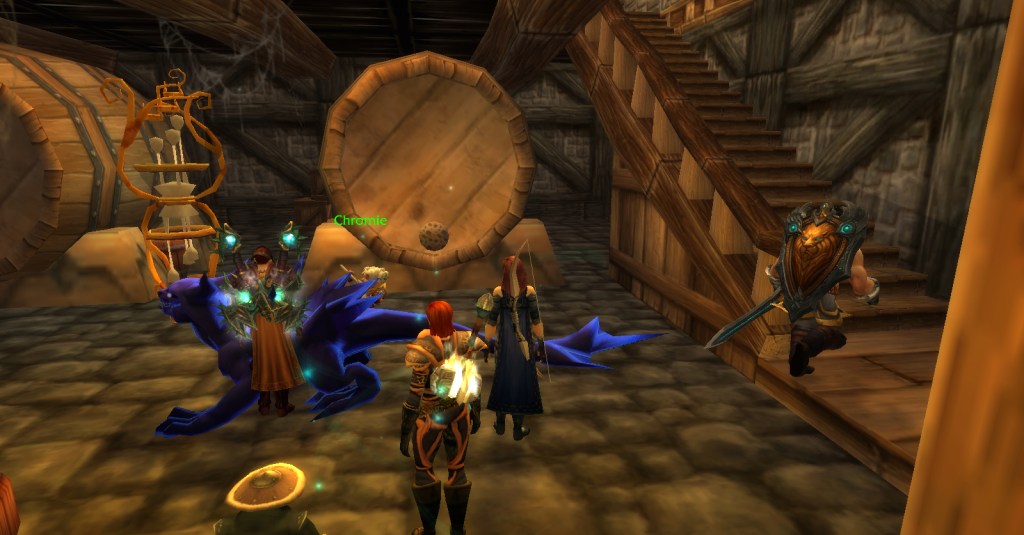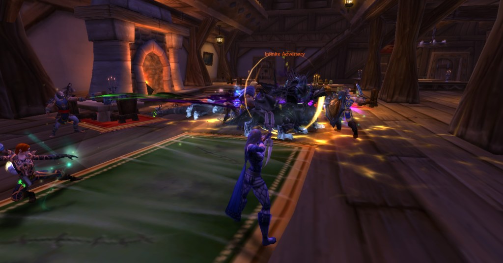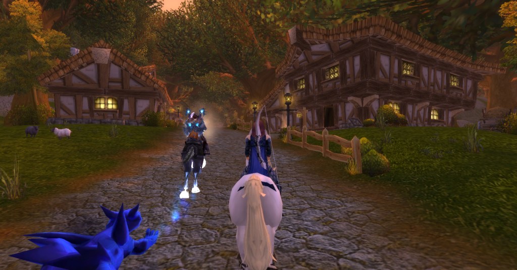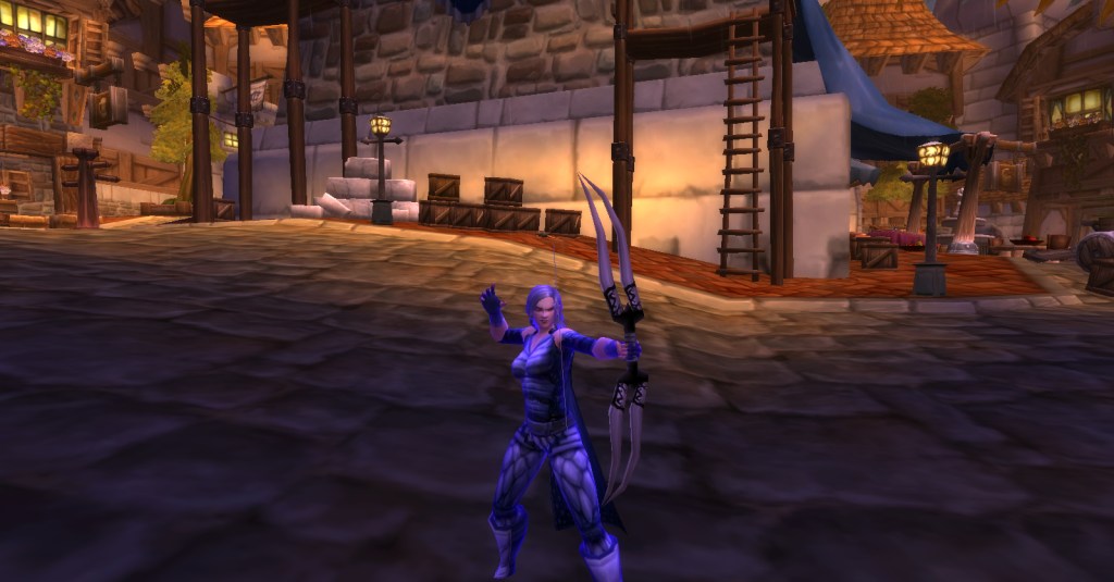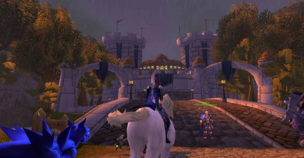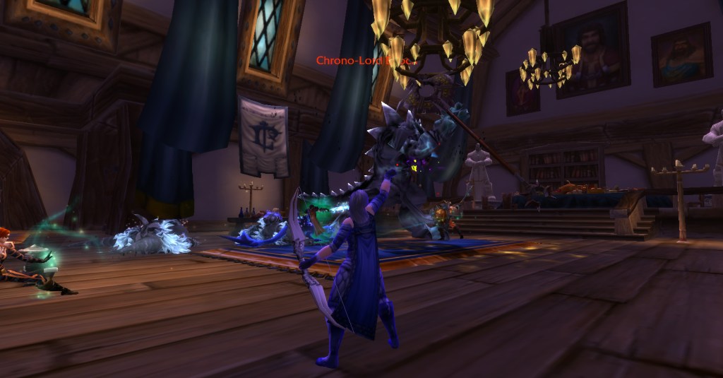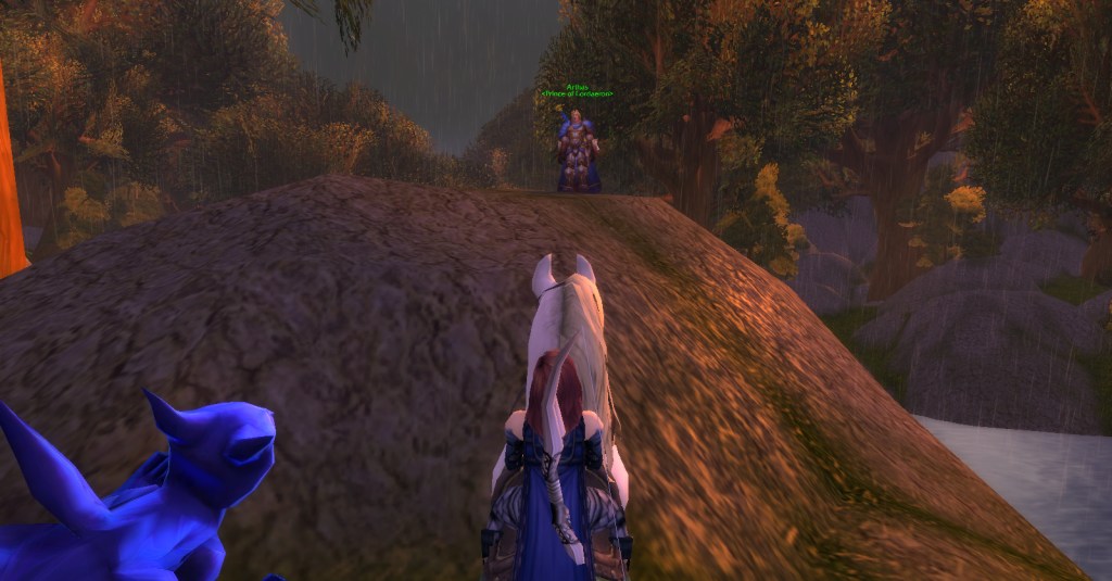 I imagine a lot of Warcraft players and Warcraft book readers know how the Culling of Stratholme happens, so I won’t retell it here with words. Instead, I’ll share my screenshots from my dungeon run that night. I was playing my void elf hunter, Val, but everyone gets turned into a human for this particular dungeon. In some of the pics my human hunter looks purple because the entropic embrace of void elves doesn’t agree with her skin tone. I really enjoyed the dungeon because it felt like I was stepping into a very familiar story and experiencing it firsthand. I’m going to run it with my oldest daughter sometime because she loves Arthas and all that lore even more than I do.