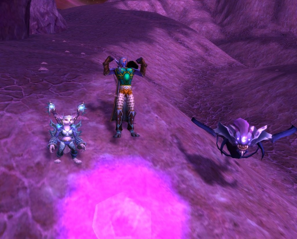Then yesterday I learned that her nightborne hunter was very close to my vulpera shammy’s level of 70. I was playing my shammy in Northrend, but I’ve done all of those areas so many times I’m tired of seeing them. However, I really want to keep leveling my shammy while the experience bonus is active, and I thought teaming up with my daughter’s nightborne hunter might help me do that. My daughter was questing in Netherstorm because she’s familiar with that area and wanted some of the pets from there, so I joined her there on my shammy yesterday.