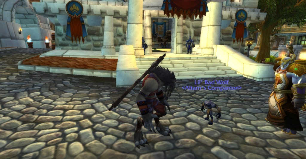 I hopped online the next day at the designated time and met up with the person who had made a new character on that realm just so they could give me the pets. Talk about kindness! They gave me a few pets they thought were interesting and would fetch decent gold and they also gifted the the Lil’ Bad Wolf pet which I found absolutely adorable!