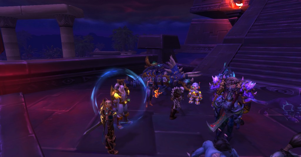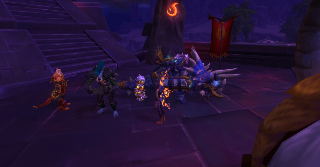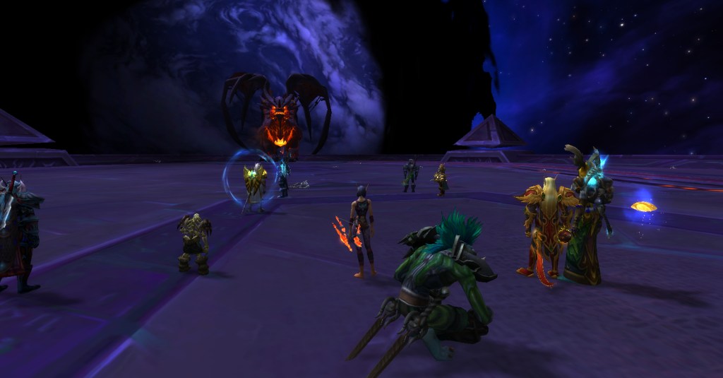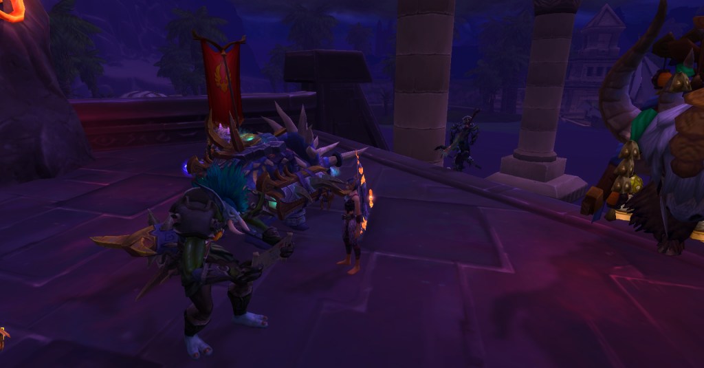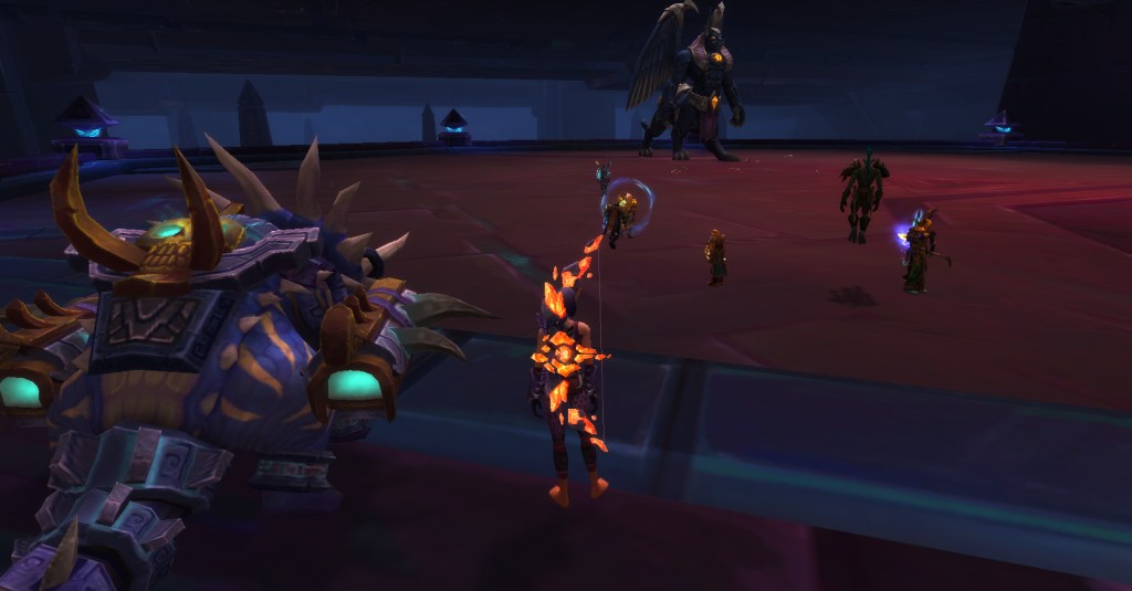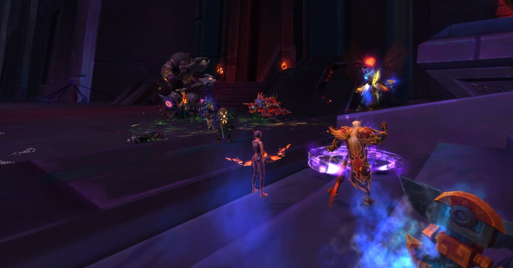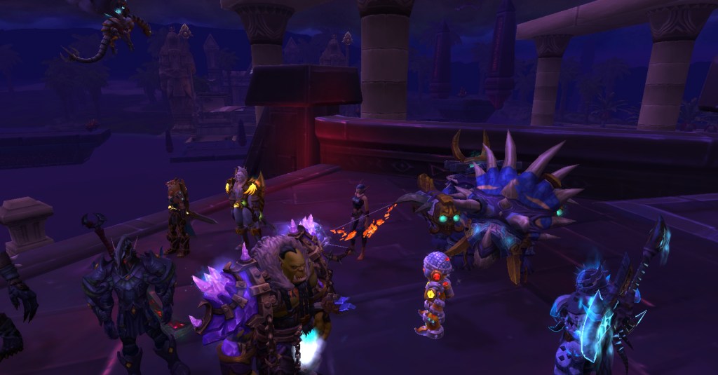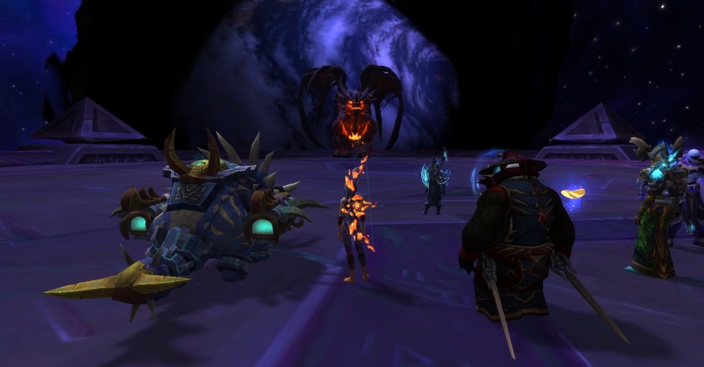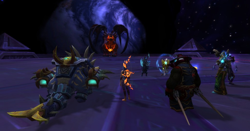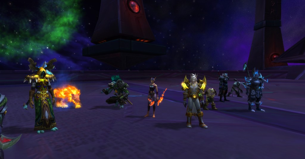 It was a great group. Everyone was friendly, patient, helpful, and determined. No trash talk, no kicking, no judging. For a player like me who is perhaps not as skilled as she should be, such a group is a gift! Wrathion was rough, we wiped many times, and I was usually one of the first to die, but we kept going and got through the first three bosses. I had to leave after that to finish making dinner but I’m sure they continued being an awesome and accepting group of players and I look forward to running with them again!
