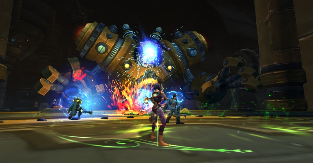 Our fierce group of five tore through the dungeon relatively easily and then we reached the area that will give me nightmares for the rest of time, the stealth puzzle with little robots that zap you if they see you and send you back to the beginning. I’m not good with stealth puzzles and the rogue quest for the class mount had a section where I had to stealth past guards that I failed miserably. I finally asked my daughter to do it for me because she doesn’t get as stressed out as I do during such tense endeavors. In fact, I’d seen her doing the stealth section of Mechagon a couple weeks ago and commented that it looked awful and I’d be horrible at it. I guess I was predicting the future.