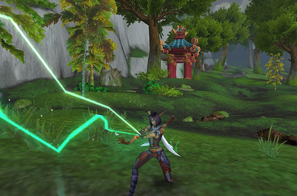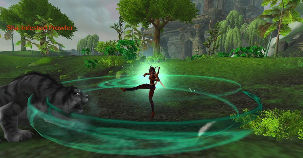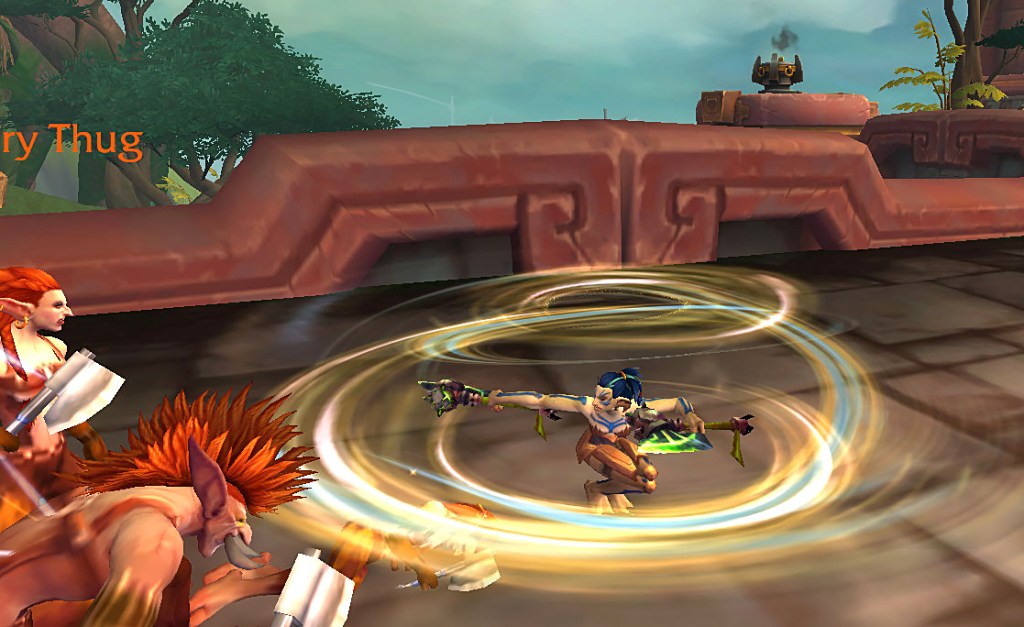 Due to my addiction to blood elves, I soon fell in love with my baby monk and decided to keep playing her until level 10 and then took her to Pandaria. I discovered that she would occasionally slice with her sword and I hoped that was a new action added for Shadowlands. But once she could pick a spec, she didn’t use her sword anymore, which was a bit of a bummer.