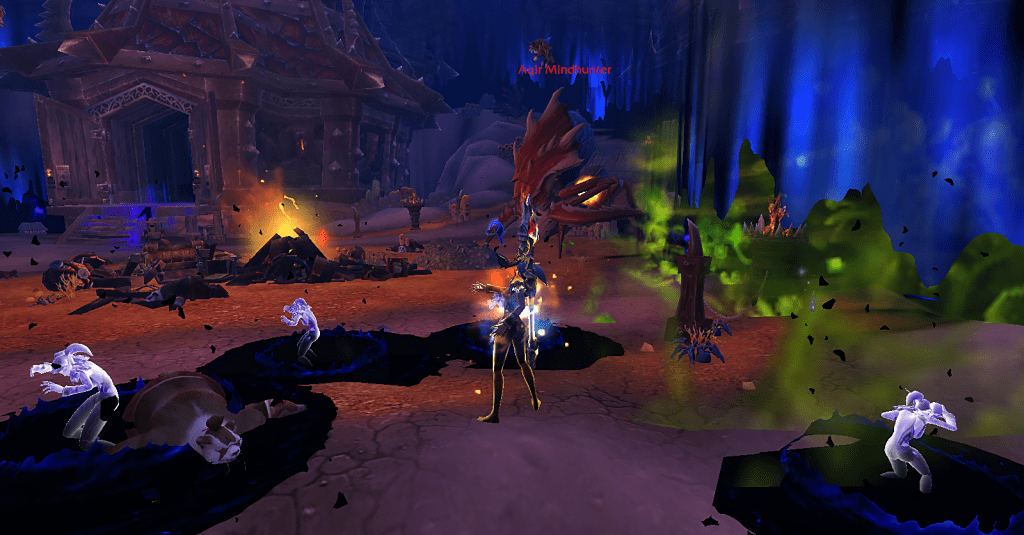 When I first acquired my cloak on all the characters I got it on, I’d try soloing a vision just to see how things went. I was able to defeat the boss and maybe clear one area, but that was about it. As my item level and corruption resistance/sanity level increased, I never really went back solo to see how things felt. My blood elf warlock Srixi ended up having the highest item level, sanity, and corruption resistance of all my toons and I think I’d gotten pretty good at playing lock, but I was still leery of soloing visions.