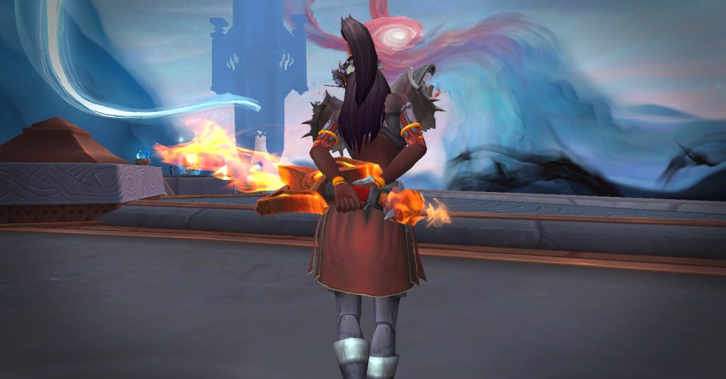 A majority of my World of Warcraft characters have background stories either in my head or written out in my fanfiction. My blood elf paladin Resora had a background story that I started writing about in one of my fanfictions, but the more I played her, the more I realized that she didn’t fit that story anymore. Resora created a different background story as I played her and I love it when a character comes to life like that in surprising ways.