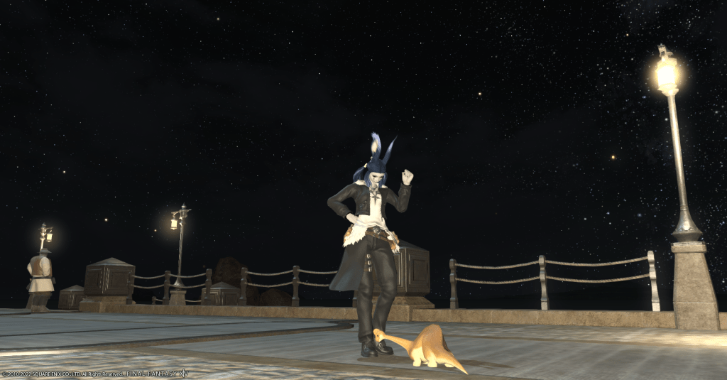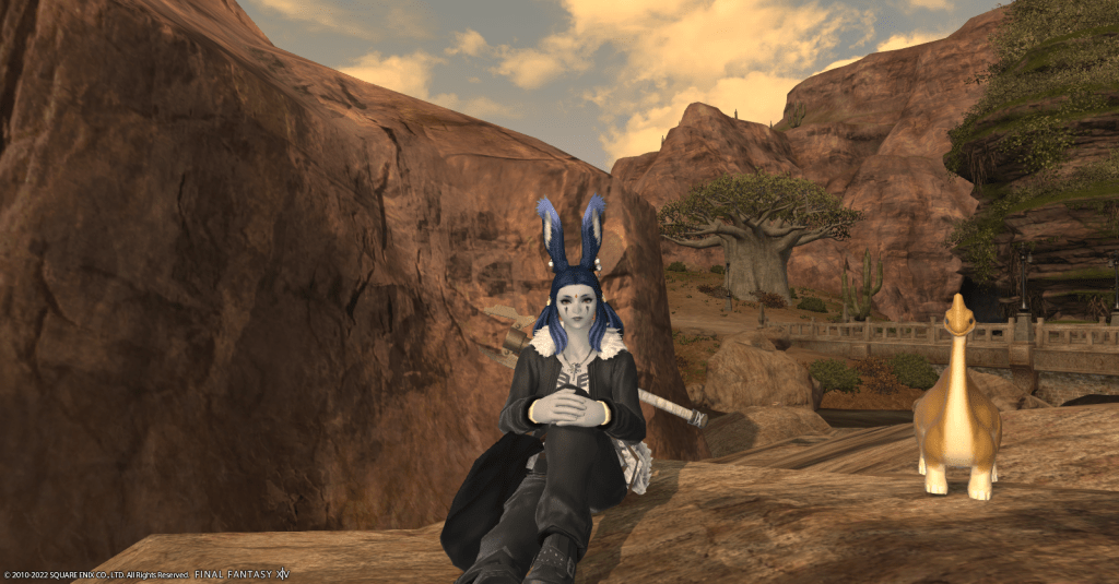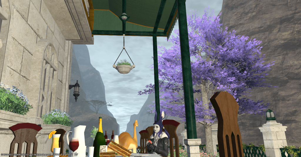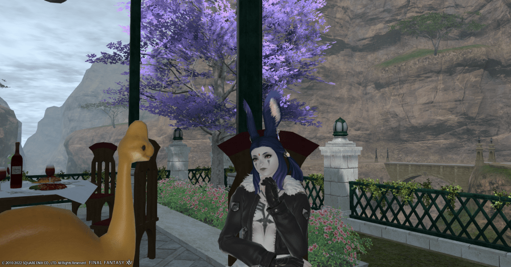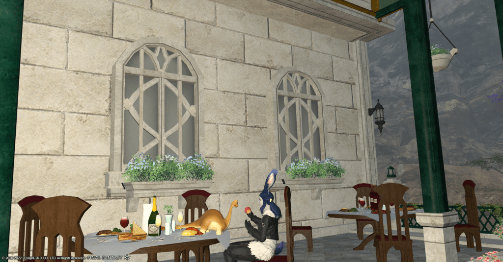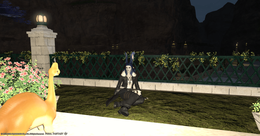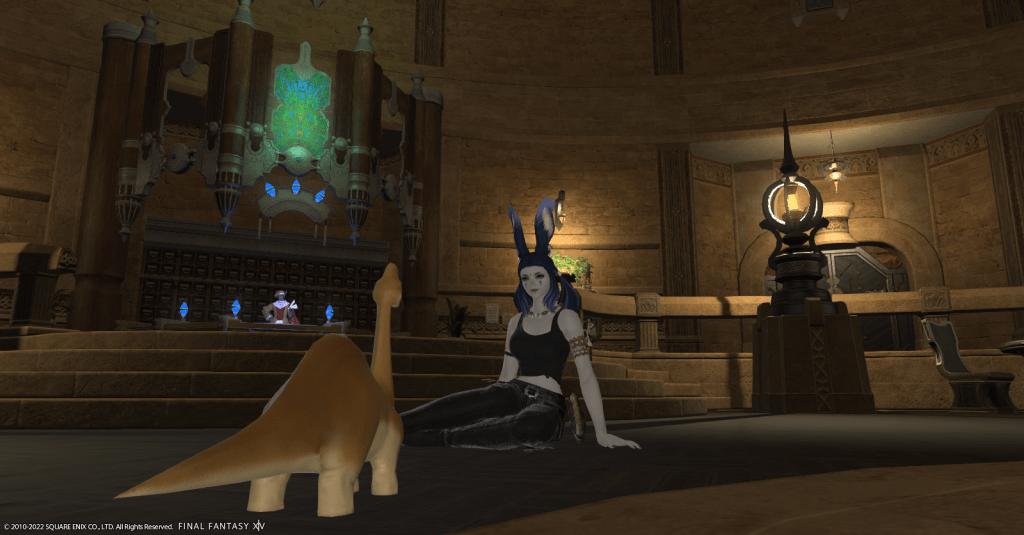 After investigating the possibilities, Raj decided that she’d eventually settle in an apartment in the Lavender Beds in Gridania. She likes all the shadows and shade the trees provide, it’s not overly hot, and there are a lot of places for Waffles to play. Obtaining an apartment is still a fair ways off for her, but Rajilo is determined to make a home for her and her adopted dinosaur son.