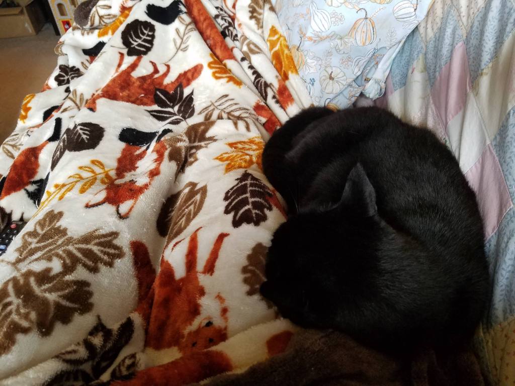 When the couple came to pick up the kittens, I had no trouble getting Pumpkin, but Owl got out of the crate and hid behind the dryer where I couldn’t reach her. I apologized profusely to the couple, but they were all right with taking just the orange kitten. I too was quite all right with getting to keep my black kitten Owl because she and I had already formed a bond. I’d never had a black cat before and after her, I can’t imagine not having a black cat in my life.