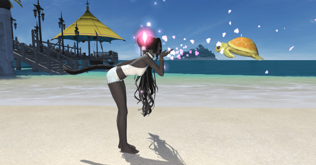 I created the character because my cat Owl was starting to have some tough days and while she kept bouncing back, I was afraid there would come a day when she didn’t bounce back. I wanted to make a character while Owl was still doing relatively well so I could somehow embody her strength and energy. I wanted to have the best memories of Owl possible somehow encapsulated in my FFXIV Miqo’te woman and while that may sound silly, in my head it makes sense.