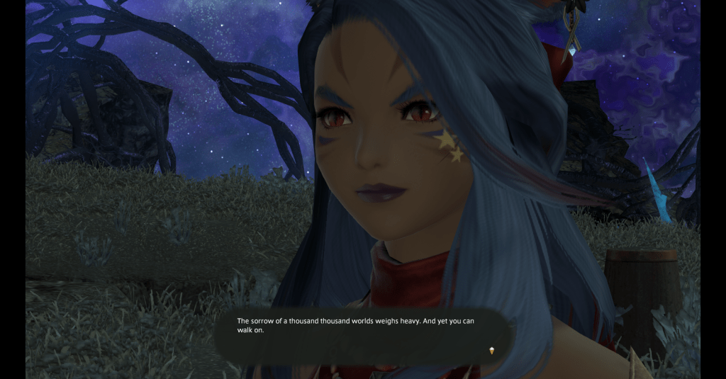 There were parts of the MSQ that occurred during very wrong times of my life and my biggest struggle sometimes was finding the desire to play a game called “Endwalker” when I’d been dealing with losing two beloved pets in a relatively short period of time. I didn’t want to deal with “the end” any more than I already was. But as my dear friend Jack has told me many times, Endwalker isn’t about the end of life, it’s more about beginnings, seeing all the good in life, and being able to keep moving forward. And thus, I kept moving forward, and I walked on.