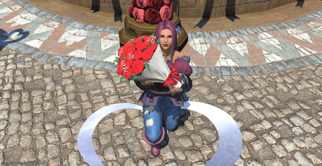 I won’t reveal anything about this year’s Valentione’s Day event quests because it just started today and I don’t want to post spoilers but I will say I found it short, sweet, and cute. The emote you acquire by doing the event is called bouquet n was revealed when the event dates were announced so I have no problem posting pictures of it and emotes from past events.