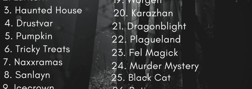 October has arrived! Despite the various challenges October has brought me through the years, it's still my favorite month and Halloween is still my favorite holiday. To express my enthusiasm for October this year, I've decided to participate in a prompt challenge put out through an awesome World of Warcraft player who I've had the… Continue reading Wowtober: Let the Fun Begin!